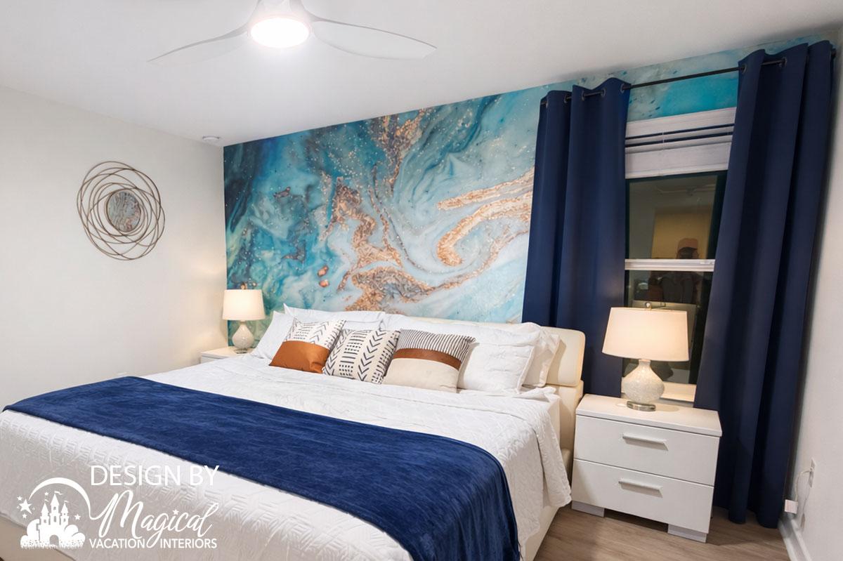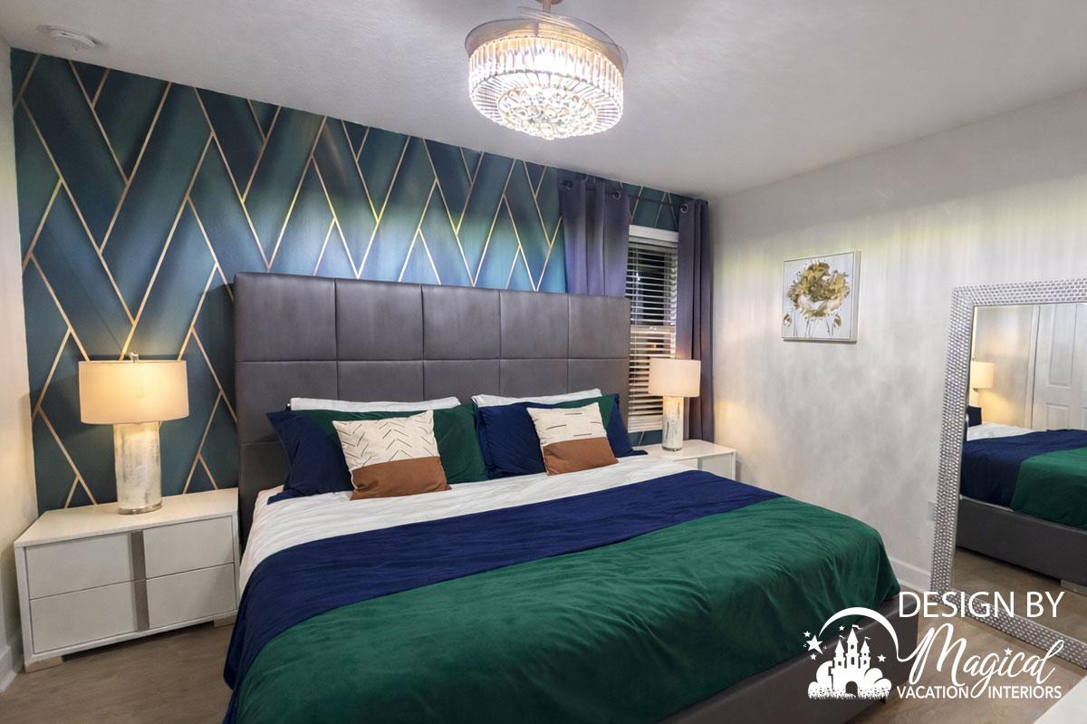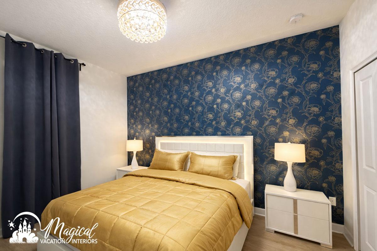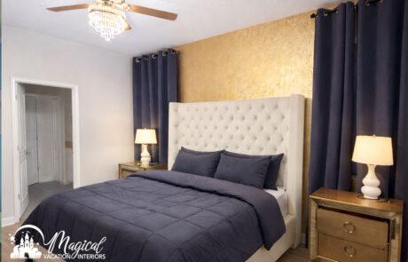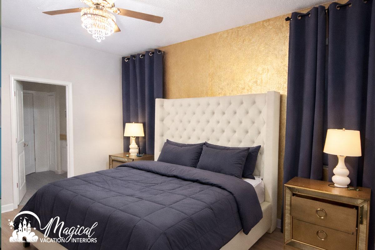 Bedroom design for vacation rentals in Orlando should feel cozy, welcoming, and thoughtfully designed for guests to truly relax. The word cozy describes being comfortable and warm — like curling up under a soft blanket after a long day of fun, laughter, and unforgettable experiences. That feeling is exactly what Magical Vacation Interiors creates in every vacation rental bedroom we design.